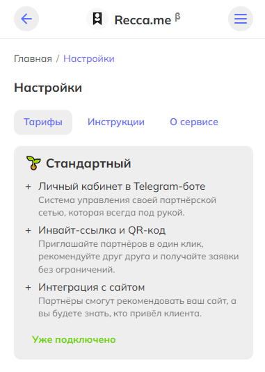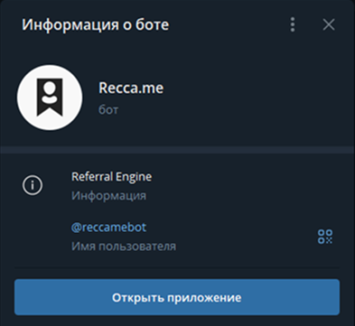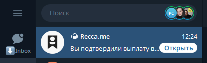 💡 Совет: закрепите бота Recca.me в верхней части списка чатов Telegram и/или добавьте его в удобную папку чатов, чтобы быстро открывать личный кабинет.