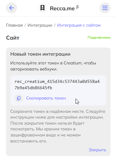 ⚙️ Инструкции для настройки интеграции с сайтом: